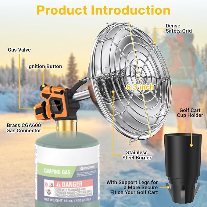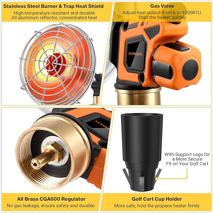 - 【TOUGH & WEATHER-READY】 Made with premium rust-resistant materials, this heater stands up to wind, cold, and outdoor wear. Great for golf carts.