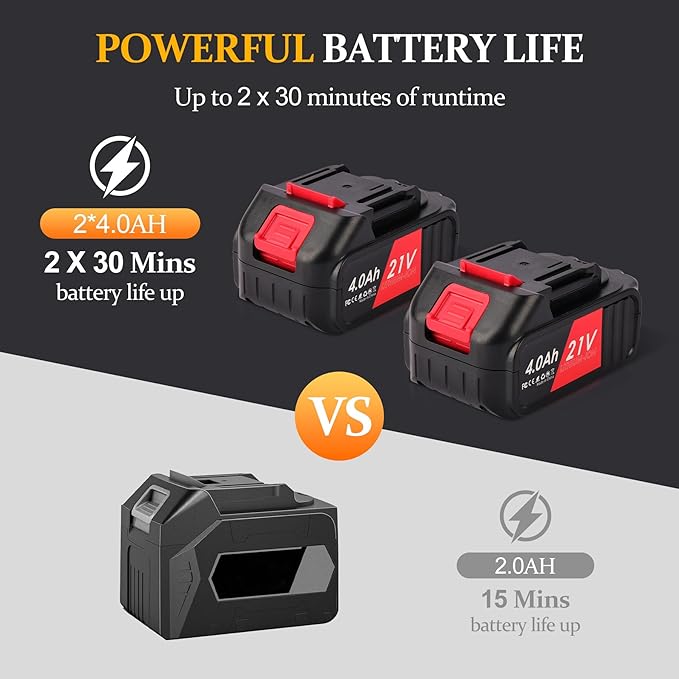 - Long-Lasting Battery and Quick Charging: Equipped with two powerful and removable snap-on batteries, this electric garden tiller delivers over 60 minutes of continuous high-power operation, significantly reducing the need for frequent recharging. Its advanced temperature and overload protection mechanisms enhance durability while ensuring safe performance. With the included rapid charger, each battery can be fully recharged in just 30 minutes—minimizing downtime and maximizing productivity.