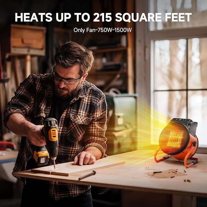 Greenhouse Heater with Remote, 1500W Outdoor Patio Heater with Digital Thermostat, Garage heater 24-Hour Timer for 3S Fast Heating, 3 Modes Adjustment, PTC Overheat Protection for Grow Ten