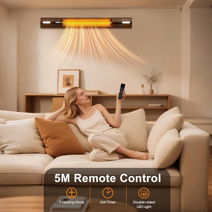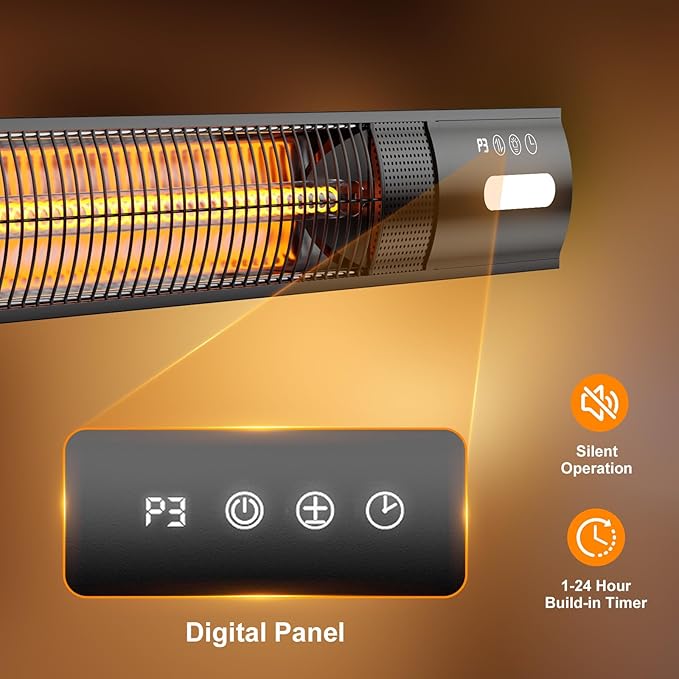 - đ„ăQUIET AND 24 HOURS TIMINGă: With overheating protection and super quiet design, our electric heater can create a peaceful and cozy environment for you whether you are in the study, bedroom or workshop.24-hour timing function, you don't have to worry about overheating the wall heater as well as waking up to turn off the heater when you are sleeping.