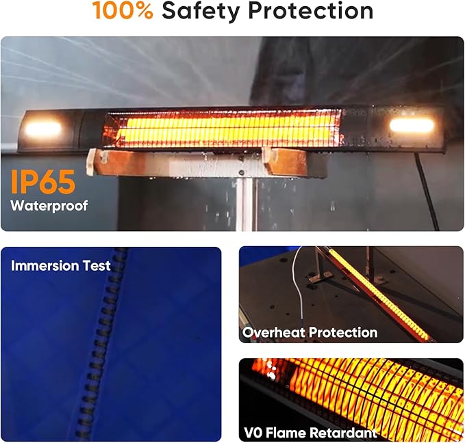 - đ„ăIP65 WATERPROOFă: With an IP65 rating the YESERLI heater can withstand any elements; whether its rain, snow, sand, or dust, your heater will stand up to the harshest outdoor conditions for years to come.lt is also great for indoor uses when you want to stay warm in the garage, shed or your home.
