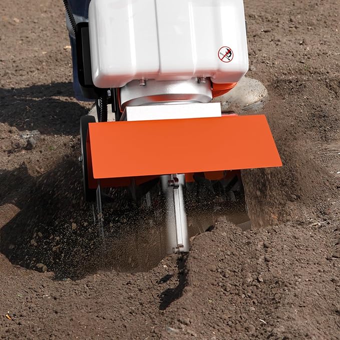 62cc Gas Tiller Cultivator, 10-Inch 2-Cycle Gas Powered Garden Tiller for Heavy Duty Soil, Self-Propelled Lawn Tiller with 4 Steel Tines & Adjustable Handle, Easy Pull Start for Clay/Dirt