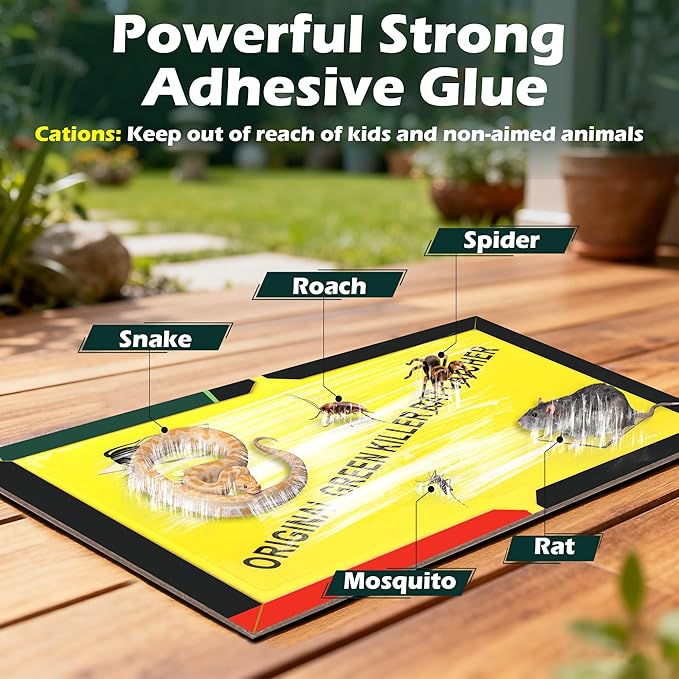 - 【STROGNLY ADHESIVE STICKY GLUE TRAPS FOR MICE】These mice glue traps indoor are made of special glue which is strongly adhesive and evenly distributed. Making it easier to catch mice/rats/snakes and other pests while keeping your home tidy, clean and healthy. It is not subject to weather change. Great to use in kitches, homes, restaurants, bars