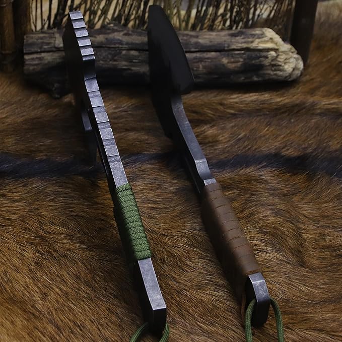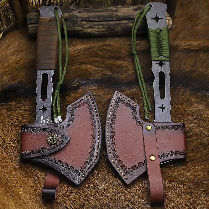 BA-KOR 12.2-inch DC53 Steel 10mm Thick Multi-Functional Survival Axe for Camping, EDC Tool, Jungle Logging Axe + Axe Sheath (5.9in) Cerium igniter