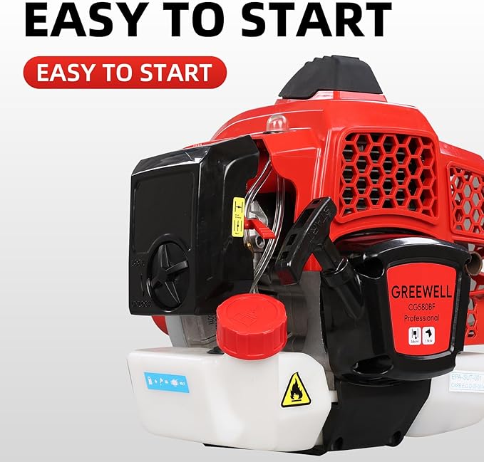 - EPA compliant gas weed wacker: Stay eco-friendly with this compliant model. Features an 18 inch trimmer head and 10 inch brush cutter blade, ideal for versatile trimming as a petrol trimmer