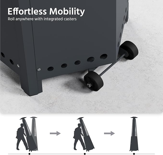 - 【Smooth Mobility with Wheels】Effortlessly move this outdoor heater around your patio or poolside thanks to its integrated wheel assembly, ensuring flexible placement wherever warmth is needed.