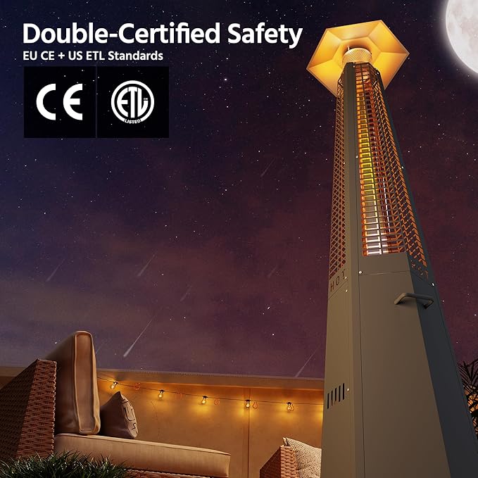 - 【Elegant 90.5" Stainless Steel Design】Command attention with this sleek towering heater featuring durable stainless steel construction and elegant glass flame tubes that elevate any outdoor gathering.
